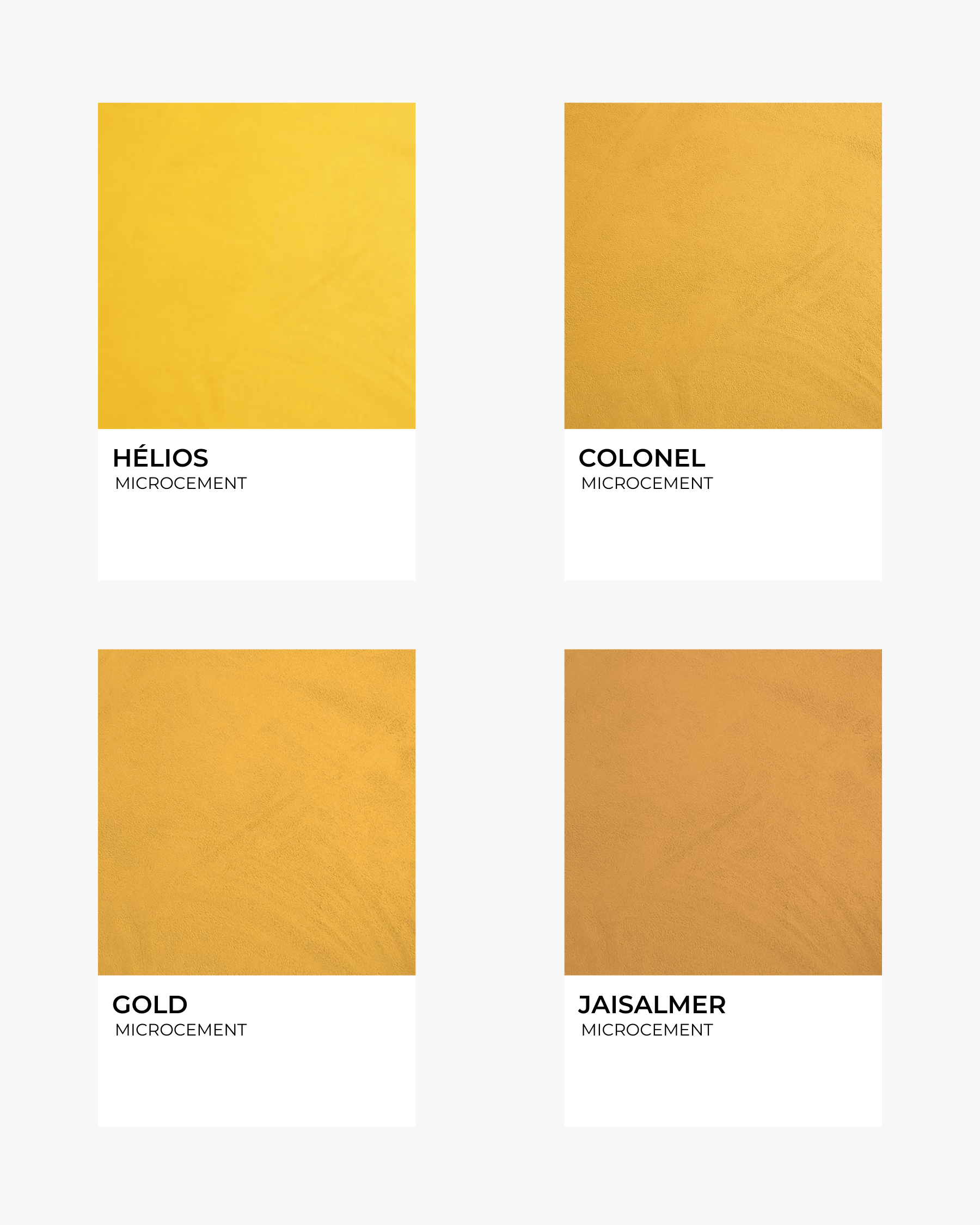 Golden yellows introduce light and warmth in a way that feels natural rather than bright. Inspired by amber, aged brass, and mineral pigments, these tones glow softly when applied in microcement, their vibrancy tempered by the matte surface. They bring optimism and energy while remaining grounded and sophisticated.