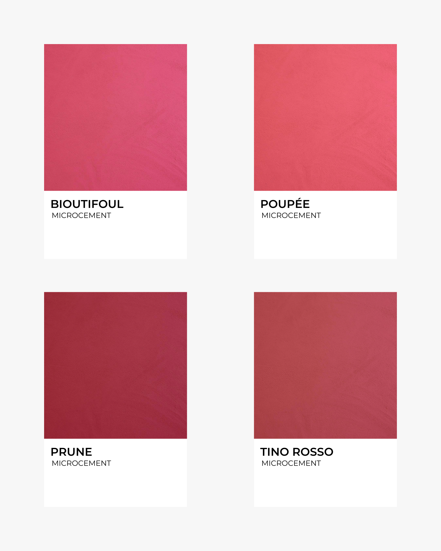 Inspired by gemstones and aged wine tones, ruby reds bring warmth and vitality to interiors. In microcement, these colours are naturally grounded by the material’s mineral quality, resulting in a richness that feels expressive yet controlled. They add character and presence without overwhelming the space.